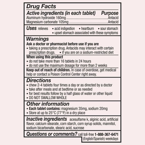 • Relieves heartburn, sour stomach, acid indigestion, and upset stomach associated with these symptoms