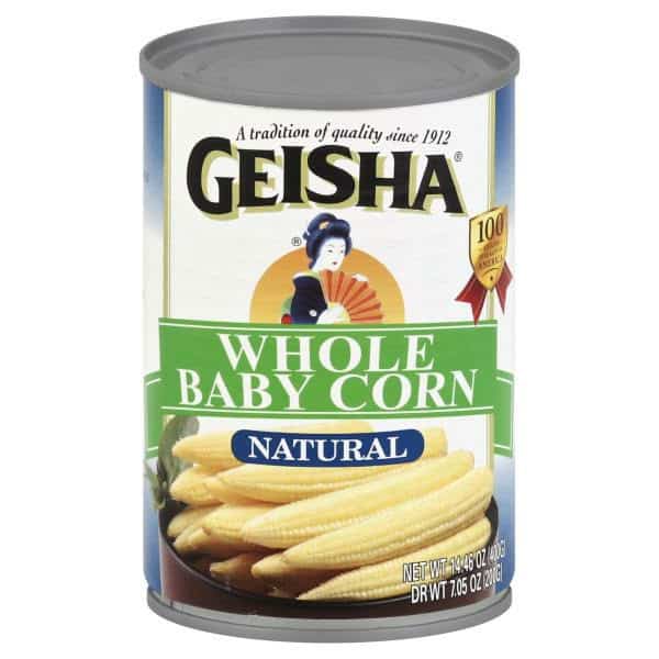 Dr Wt: 7.05 oz (200 g). Natural. A tradition of quality since 1912. 100 years of quality in America. Gluten free. Baby Corn: Our products are selected from the best quality raw materials in order to achieve the fresh and hygienic products of an international standards. We also provide technical assistance to our affiliated plants in the oversea countries and enjoy the confidence of our customers for the products high quality. www.geishabrand.com. Product of Thailand.