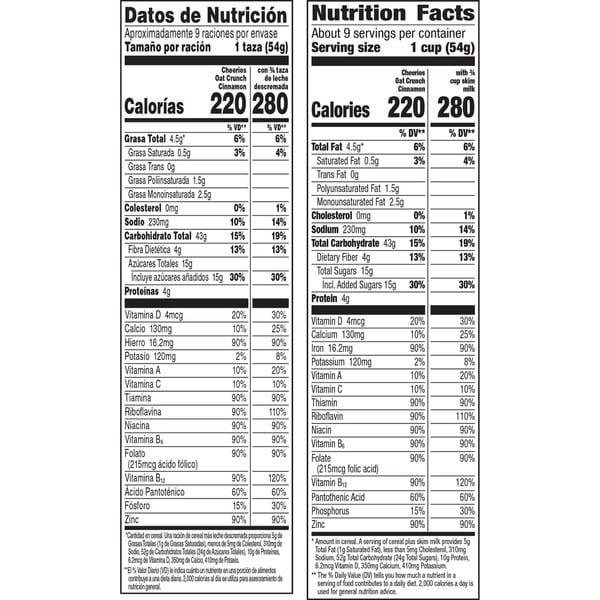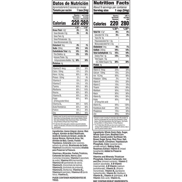 • WHOLE GRAIN GOODNESS: Whole grain oats are the first ingredient; Each serving contains 31g of whole grain (at least 48g recommended daily); About 9 servings in every Cheerios Oat Crunch Cereal large size box