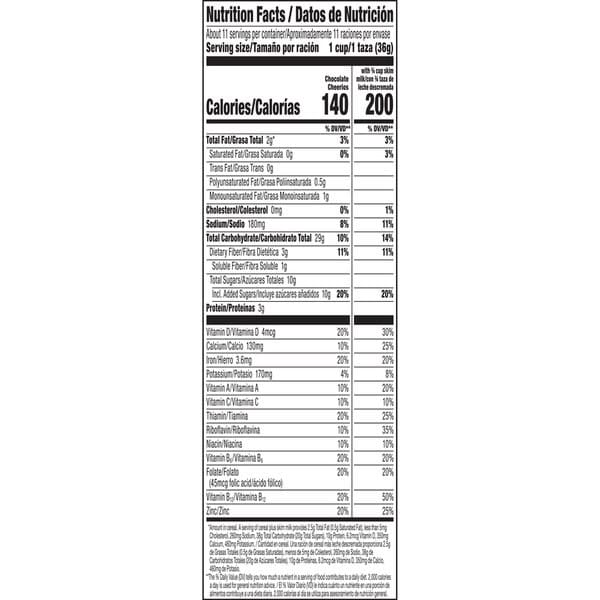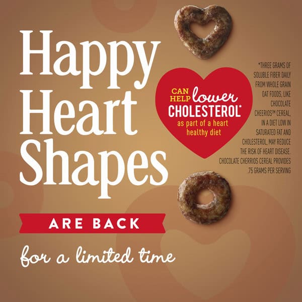 • CAN HELP LOWER CHOLESTEROL* as part of a heart healthy diet; *3g of soluble fiber daily from whole grain oat foods, in a diet low in saturated fat and cholesterol, may reduce the risk of heart disease – Chocolate Cheerios provides .75g per serving