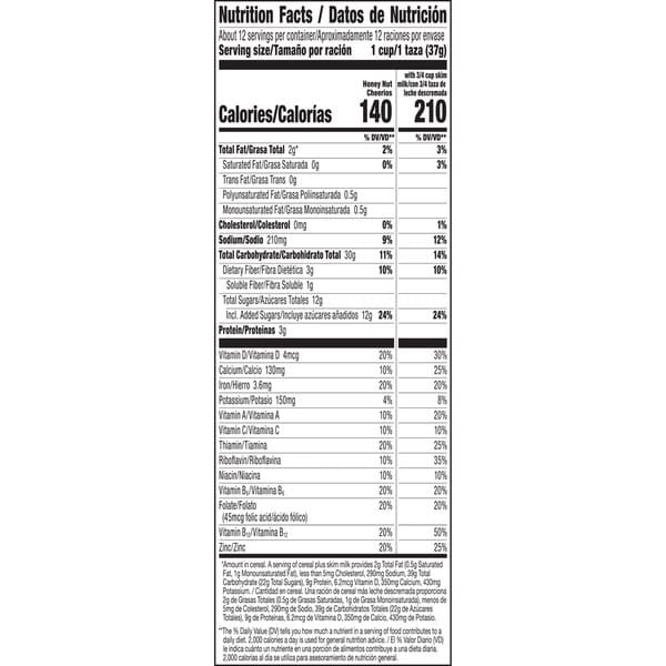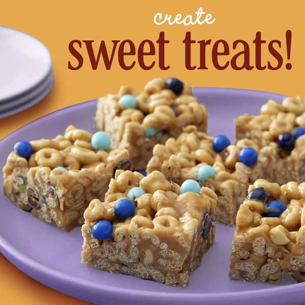 Honey Nut Cheerios Cereal is un-bee-lievably delicious! Every box of this gluten free, sweetened, whole grain oat cereal brings the taste of real honey and natural almond flavor to your family table. Honey Nut Cheerios can help lower cholesterol* as part of a heart healthy diet. *Three grams of soluble fiber daily from whole grain oat foods, like Honey Nut Cheerios Cereal, in a diet low in saturated fat and cholesterol, may reduce the risk of heart disease. Honey Nut Cheerios Cereal provides .75g per serving. Each serving of Honey Nut Cheerios provides 22g of whole grain (at least 48g recommended daily), 12 vitamins and minerals, and a good source of both calcium and fiber. Beyond a quick part of breakfast for adults or kids, these yummy whole grain cereal Os made with oats, make an easy, gluten free snack by the handful. Pack some crispy cereal in a lunch box for a sweet treat. Or use these honey cereal Os as an ingredient in your favorite cereal bars recipe. However you enjoy Honey Nut Cheerios, it’s a part of General Mills breakfast cereals, spreading goodness from tots to grown-ups.