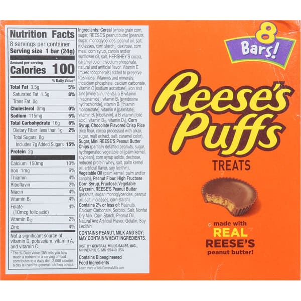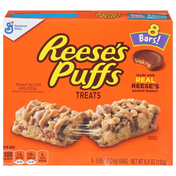 • CEREAL BARS: You don’t always need a bowl to crunch into your favorite cereals; Now transformed into a portable snack with Reese’s Puffs Cereal Bars