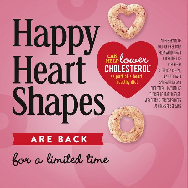 • CAN HELP LOWER CHOLESTEROL* as part of a heart healthy diet; *3g of soluble fiber daily from whole grain oat foods, in a diet low in saturated fat and cholesterol, may reduce the risk of heart disease – Very Berry Cheerios provides .75g per serving