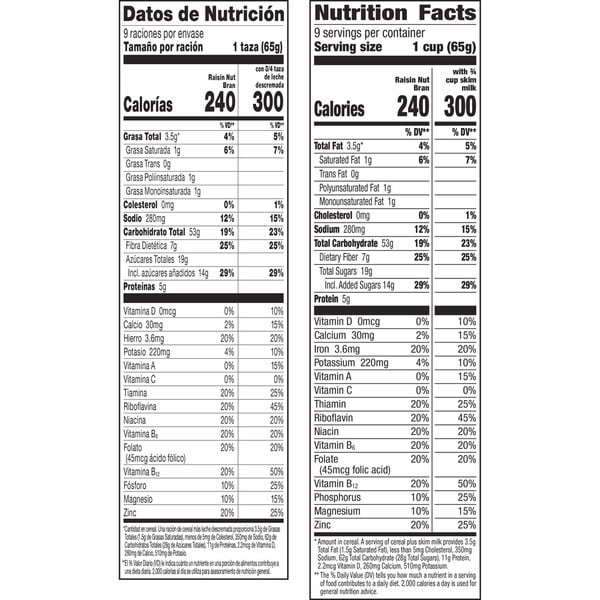 Raisin Nut Bran Cereal is raisin the bar on breakfast with a unique combination of tastes and textures that’s simply a cut above the rest. Every bowlful brings crispy flakes, crunchy almonds, and sweet covered raisins for a wholesome and tasty start to any day. Raisin Nut Bran is a deliciously crafted cereal that delivers sustained energy from whole grain to take on even your busiest mornings. It’s also an excellent source of fiber to help keep you full (7g fiber and 3.5g total fat per serving). Serve this mix of wheat and bran cereal flakes, raisins, and almonds with cold milk as a quick and easy breakfast that satisfies. Sprinkle this breakfast cereal with whole grains over yogurt for a crispy bite between meals. Or add some to trail mix recipes and healthy cereal bars for on the go snacks you can feel good about. Whether you reach for Raisin Nut Bran as your go-to fiber cereal, whole grain breakfast food, or ingredient in healthy snacks recipes, General Mills breakfast cereals spread goodness from tots to grown-ups.