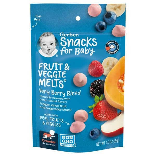• 1 oz package of Gerber Very Berry Blend Fruit and Veggie Melts