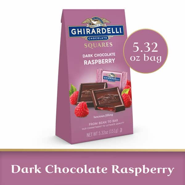 Slow down and savor the rich taste of GHIRARDELLI Dark Chocolate Raspberry squares. The perfect after-dinner treat or special gift, these raspberry chocolate squares make any part of your day more delicious. Each dark chocolate square features delectable, luscious raspberry filling surrounded by rich dark chocolate. These individually wrapped chocolate squares are the perfect personal size indulgence for home, work and on the go. GHIRARDELLI chocolate is crafted with care using high quality ingredients for a smooth, slow-melting, dark chocolate raspberry treat. GHIRARDELLI Makes Life a Bite Better.
