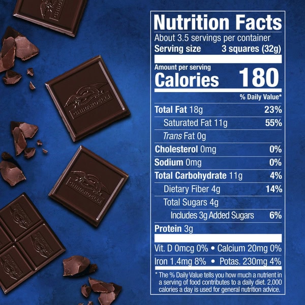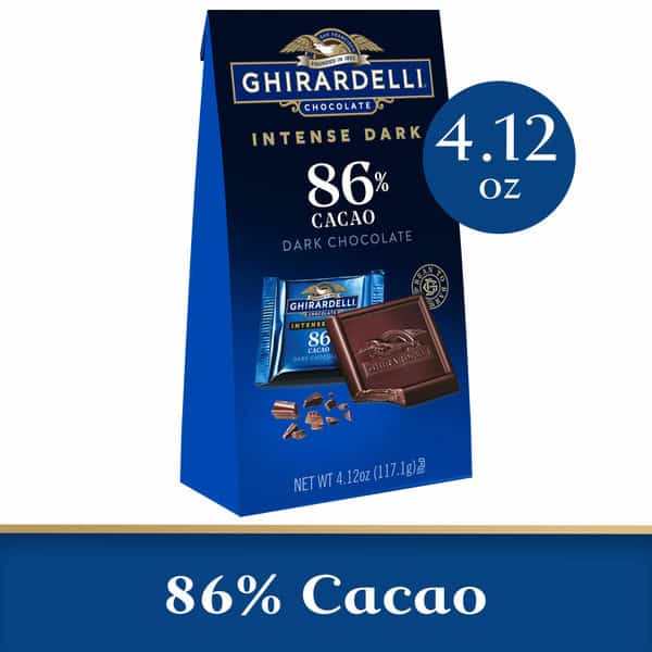 Each intensely delicious square of GHIRARDELLI Intense Dark 86% Cacao Dark Chocolate Squares caters to your senses. Indulge in the rich chocolate intensity after dinner, or serve GHIRARDELLI Intense Dark chocolate candy at your next gathering to create the ultimate moment of sheer delight for your guests.​ Savor the indulgent taste of the finest cacao beans skillfully blended to create rich, bold and intensely delicious dark chocolate with full-bodied flavor and hints of dark cherries and dried plums. Each dark chocolate square is individually wrapped for easy portioning. Premium ingredients, including high quality cocoa beans used in exclusive blends, create a smooth, slow-melting chocolate. Explore rich, bold and intensely delicious dark chocolate with GHIRARDELLI Intense Dark Chocolate Squares.