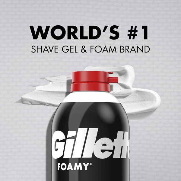 The Gillette Foamy Classic Shave Foam is a classic for a reason: it’s the quick and easy shave you need, with the smoothness and protection against shaving irritation you want. Classic as it is comforting, millions of men know and trust Gillette Foamy Classic for a reason – it is the shaving cream that has been enjoyed for generations! While gels and foams are both good at giving you a comfortable shave, Gillette Foamy Regular Shaving Foam contains hydrating emollients and lubricating ingredients. That means you can lock in moisture, soften your facial hair, and expect a smooth razor glide for a more comfortable shave. Gillette Foamy Regular shaving cream provides a thick, extra rich, creamy lather for a close, comfortable shave. The Foamy shaving cream spreads easily across your face and rinses clean leaving skin feeling soft and smooth. The Comfort Glide formula reduces friction while shaving. In short: less time and energy spent on your shaving routine. Gillette Foamy Regular Shaving Foam gives you enough foam for at least 52 shaves or 3 months of shaves (shaving 4 times per week). For best results, use Gillette Foamy shaving foam with your favorite Gillette razor.