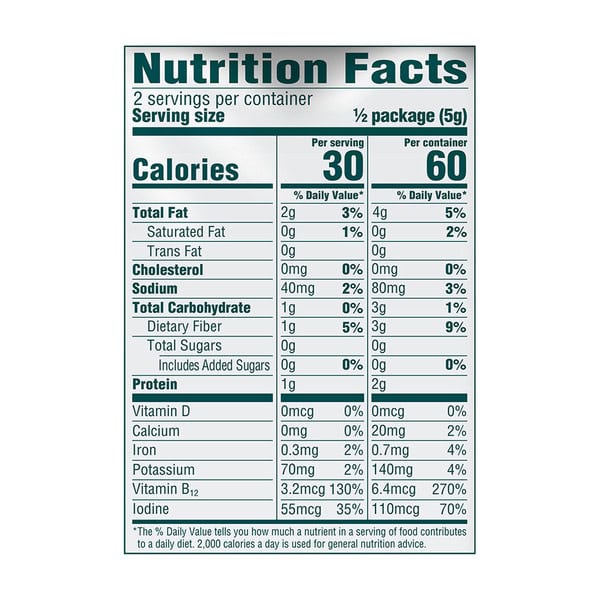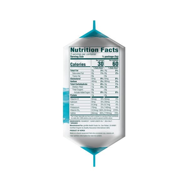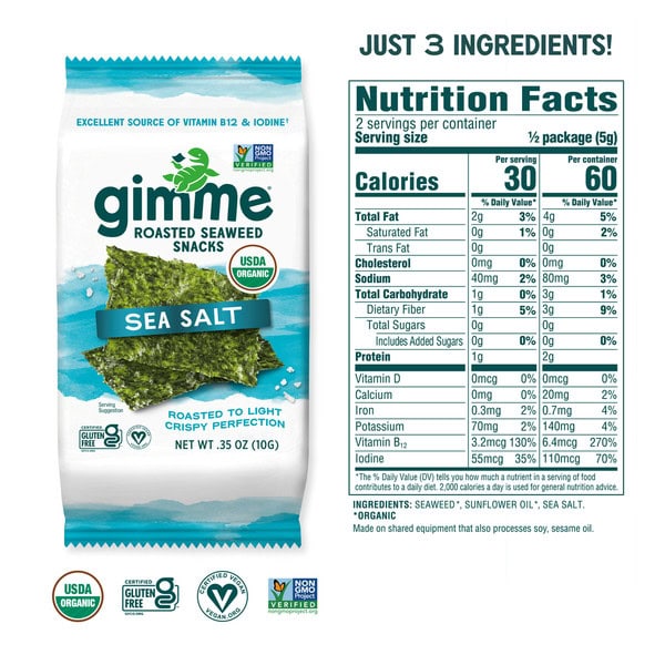 • Seaweed is naturally loaded with protein, fiber, vitamins and minerals; our seaweed has no artificial flavors or preservatives and is non-GMO