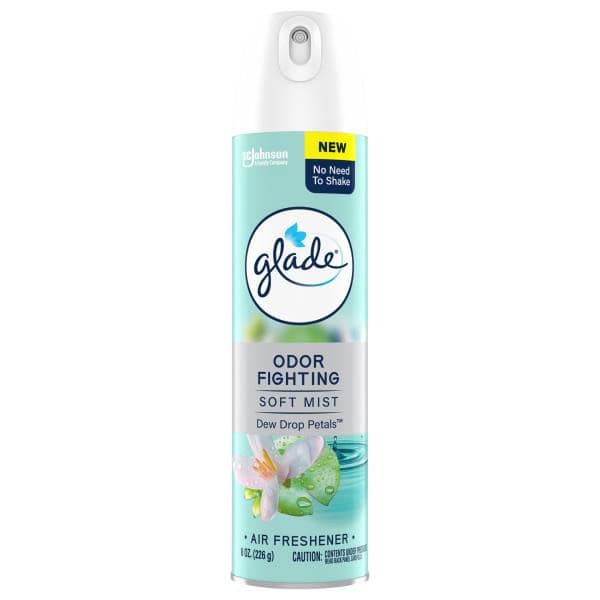 New Glade air freshener spray, now with Soft Mist technology, fights odors with a lighter spray and +20% more sprays per can*, to transform your living spaces with vibrant freshness.