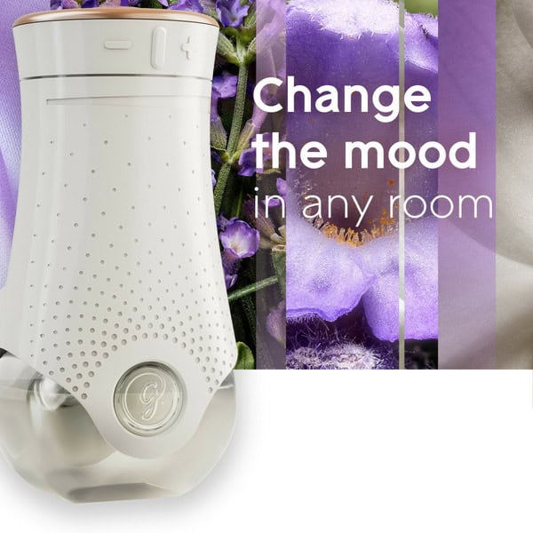 Soothe your senses with Glade Lavender & Vanilla PlugIns air freshener for home. Crafted by master perfumers with notes of lavender, jasmine and vanilla. Relax your mood with our scent diffuser and change the mood with 2x more adjustability (vs. previous Glade warmer). Express your mood with electric oil diffuser in Lavender & Vanilla fragrance. Simply remove the cap from the refill and insert it into the Glade plug in warmer. Plug the warmer into an outlet and adjust the level of fragrance to create the mood you want. Enjoy regal kind of relaxation with Glade’s PlugIn air freshener and fragrance infused with essential oils.