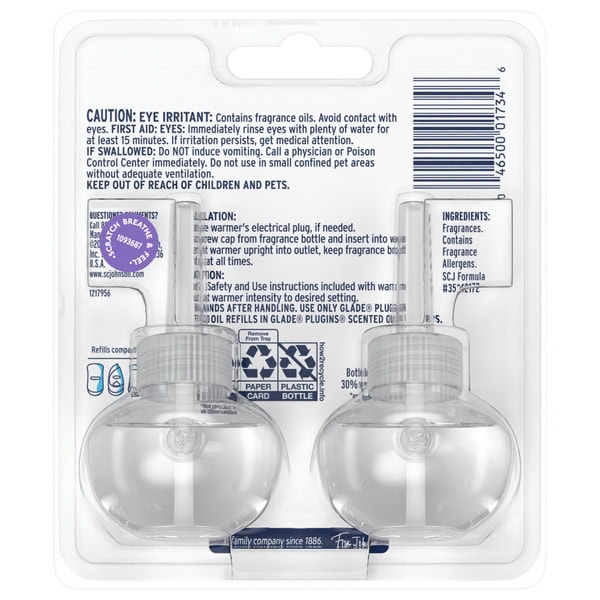 Sink into serenity with our Glade Tranquil Lavender & Aloe PlugIns air freshener for home. Crafted by master perfumers with notes of French lavender, soothing aloe and violet petals. Self care is in the air with our scent diffuser and change the mood with 2x more adjustability (vs. previous Glade warmer). Express your mood with electric oil diffuser in Tranquil Lavender & Aloe fragrance. Simply remove the cap from the refill and insert it into the Glade plug in warmer. Plug the warmer into an outlet and adjust the level of fragrance to create the mood you want. Unwind your busy mind with Glade’s PlugIn air freshener and fragrance infused with essential oils.