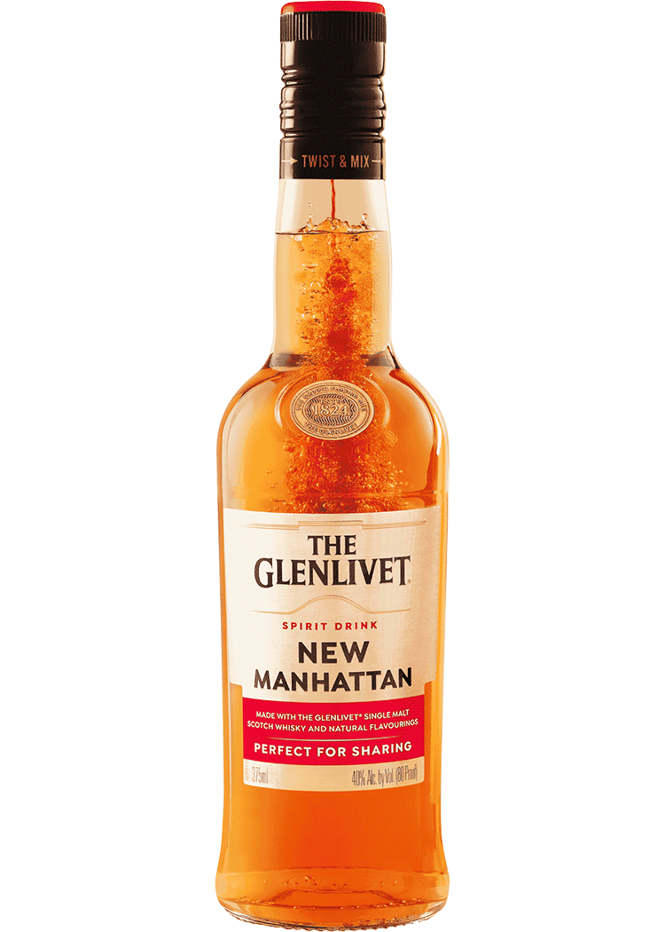 Scotland – Speyside – 40% – Create freshly-mixed cocktails with a simple twist of the cap. A new take on a classic cocktail, featuring aromatic hints of cherry and ginger complimenting the classic Glenlivet Single Malt Scotch taste. Serve over ice.