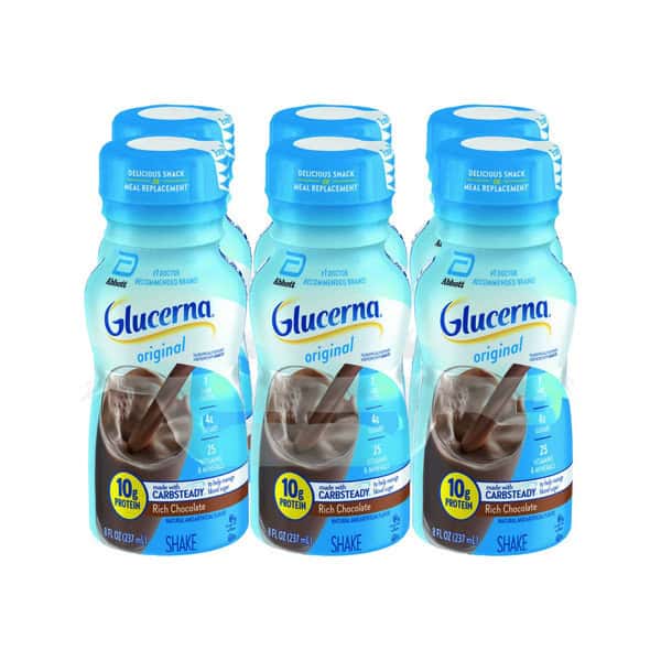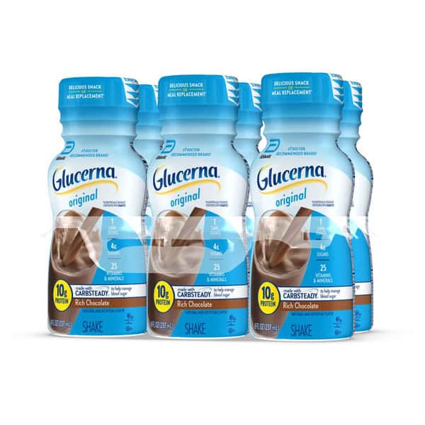 Glucerna Original shakes are scientifically designed to help people with diabetes and prediabetes manage blood sugar response.* They are made with CARBSTEADY, a unique blend of low-glycemic carbohydrates to help manage blood sugar response,* as well as 10g of protein to support muscle and help manage hunger. Glucerna Original shakes have 25 vitamins and minerals, 4g sugars, 1 carb choice, and nutrients to support immune system health.†A delicious small meal or snack, they’re suitable for lactose intolerance,‡ and gluten-free. Glucerna is the #1 doctor-recommended nutrition brand for people with diabetes. * Designed to help minimize the blood sugar spike from consuming Glucerna compared to high-glycemic carbohydrates. †Nutrients include protein, vitamins A & D, zinc, and antioxidants (vitamin C & E and selenium). ‡ Not for people with galactosemia.
