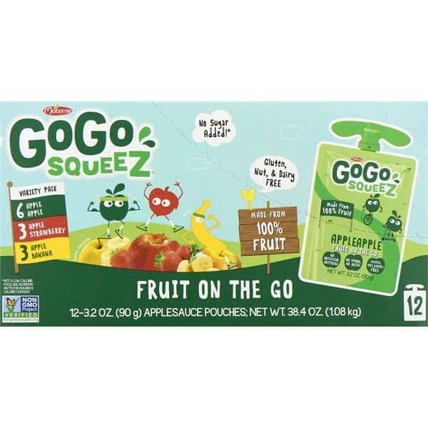GoGo squeeZ® Fruit Blend Snacks are a delicious mix of 100% fruit with no sugar added** for kids of all ages! Enjoy this convenient snack that offers a 1/2 serving of fruit* in a crowd pleasing variety pack of family favorites including Apple Apple, Apple Strawberry, and Apple Banana. *USDA considers ½ cup of fruit a serving. **Not a low calorie food. See nutrition information for sugars & calorie content.