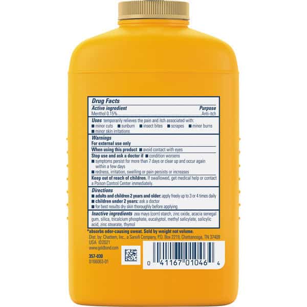 New look. Anti-itch. Menthol 0.15%. Triple action formula. Absorbs, cools & controls odor (absorbs odor-causing sweat). Talc-free. Sold by weight not volume. Sealed for freshness. The powder with the power.