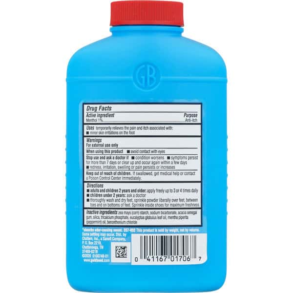 New. Talc-free. Medicated Healing Since 1908. Unique Triple Action Formula: Absorbs moisture. Controls odor (absorbs odor-causing sweat. 357-032 this product is sold by weight, not by volume). Relieves itch. Menthol 1%. This stuff works! This product is sold by weight, not by volume. Some settling will occur during handling and shipping. This stuff works! Sealed for freshness.