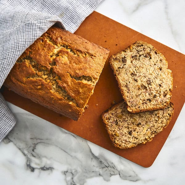 Banana Bread: 1-1/4 cups sugar, 1/2 cup butter, softened, 2 eggs, 1-1/2 cups mashed very ripe bananas (3 to 4 medium). 1/2 cup buttermilk. I teaspoon vanilla, 2-1/2 cups Gold Medal All-Purpose Flour, 1 teaspoon baking soda, 1 teaspoon salt, 1 cup chopped nuts, if desired. 1. Heat oven to 350 degrees F. Grease bottoms only of 2 (8×4-inch) loaf pans or 1 (9×5-inch) loaf pan. 2. In large bowl, mix sugar and butter. Add eggs, bananas, buttermilk and vanilla; beat with electric mixer on medium speed until smooth. Stir in flour, baking soda, salt and nuts just until moistened. Pour batter into pans. 3. Bake 8-inch loaves 1 hour, 9-inch loaf 1-1/4 hours, or until toothpick inserted in center comes out clean. Cool 10 minutes. Loosen sides of loaves from pans, remove from pans to cooling rack. Cool about 1 hour before slicing. 2 loaves (16 slices each): High Altitude (3500-6500 ft): Increase flour to 2-3/4 cups. In step 1, heat oven to 375 degrees F. In step 2, add 1/4 cup water with buttermilk. Bake 8-inch loaves about 1 hour 5 minutes, 9 inch loaf about 1 hour 30 minutes.