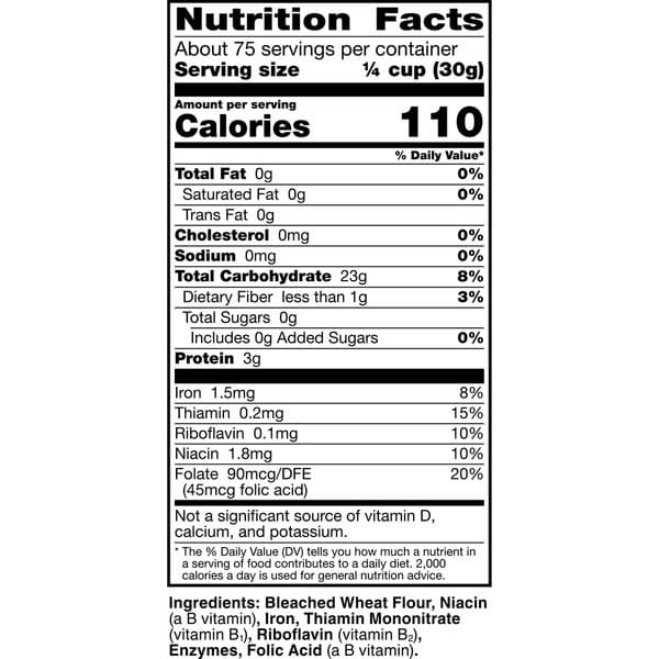 Gold Medal All Purpose Flour is the perfect companion in the kitchen. This versatile flour is strong enough for high-rising bread and mellow enough for your favorite pie crust. It can be used anytime a recipe calls for flour. A blend of pure white hard and soft wheat means every baked bite looks and tastes its absolute best. It can be used in recipes from breads to pizza dough and cookies to cakes. Presifted to help you get to the mixing bowl sooner. Whether you’re whipping up a birthday cake, or want to fill the house with the scent of freshly baked bread, choose our flour as your go-to ingredient for flawless taste and texture. Gold Medal has over 135 years of baking success. We mill the flour that people rely on to make everything from family favorites to new and inspired creations. We put our best into everything we do – so you can too.