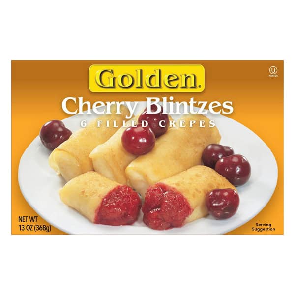 Filled crepes. Wholesome Traditional Quality: No preservatives; No artificial flavoring or colorings; 0 g trans fat. Per 1 Blintz: low 1 g fat (2% DV); low 0 g sat fat (0% DV); low 5 mg cholesterol (2% DV); 150 mg sodium (6% DV). From Our Kitchen to Yours: Generations have grown up enjoying Golden products. Since 1951, we have proudly been making delicious blintzes using wholesome, healthy ingredients; without preservatives, artificial flavors or colors. In 20 minutes or less you can conveniently serve these delicious cherry filled crepes at your next simple meal or part of your family’s holiday traditions. We are honored to share a place at your table. www.oldfashionedkitchen.com.