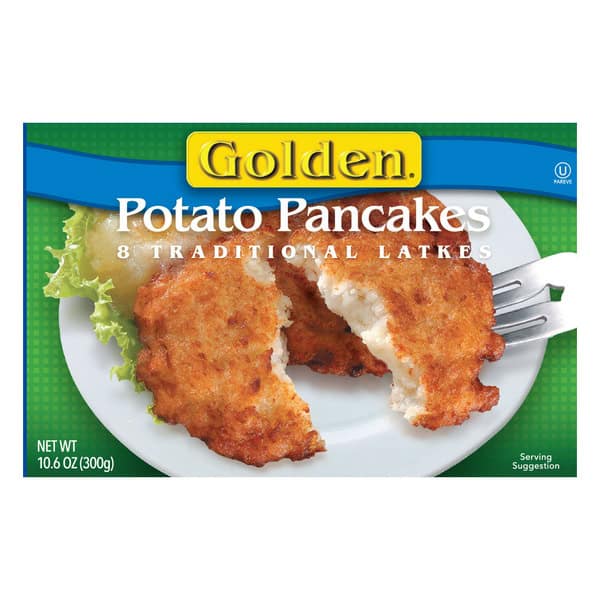 8 Traditional Latkes. Wholesome Traditional Quality: Versatile side dish and appetizer; No preservatives; No artificial flavoring or coloring; 0 g trans fat. Per 1 Pancake: 70 calories; Low fat 3 g (5% DV); Low sat fat 0 g (0% DV); Low cholesterol less than 5 mg (1% DV); 190 mg sodium (8% DV). From our kitchen to yours. Generations have grown up enjoying Golden products. Since 1951, we have proudly been making delicious pancakes using wholesome, healthy ingredients; without preservatives, artificial flavors or colors. In 20 minutes or less you can conveniently serve these delicious, traditional Potato Latkes at your next simple meal or part of your family’s holiday traditions. We are honored to share a place at your table. www.oldfashionedkitchen.com.