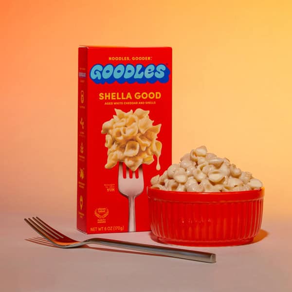 Shella Good is a tangy, aged white cheddar mac with shells that is sure to satisfy. GOODLES packs your mac with the good stuff you want and tons of yum!
