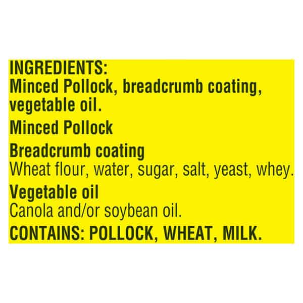 Minced Pollock, Breadcrumb Coating, Vegetable Oil.