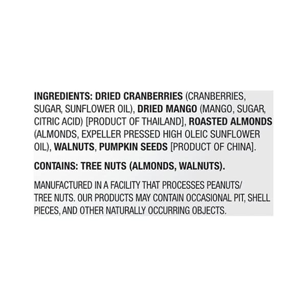 • In the mix: Walnuts, Almonds, Cranberries, Mango and Pumpkin Seeds