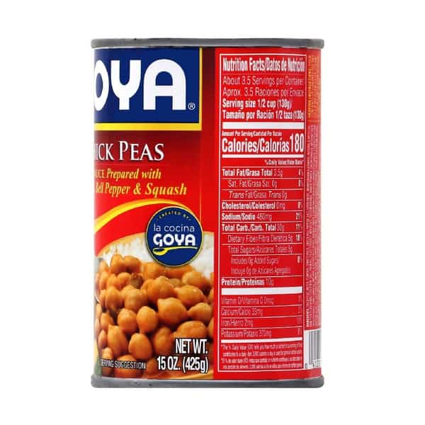 Chick Peas, Water, Pumpkin, Tomato Paste, Green Bellpepper, Salt, Soybean Oil, Monosodium Glutamate, Natural & Artificial Ham Type Flavor (maltodextrin, Salt, Palm Oil, Yeast Extract, Molasses, Silicon Dioxide, Garlic Powder, Onion Powder, Medium Chain Triglycerides, Sunflower Oil, Natural & Artificial Flavors, Natural Smoke Flavor And Citric Acid), Granulated Garlic, Hydrolyzed Corn Protein, Olive Oil, Dehydrated Onion, Sugar, Culantro, Ground Oregano, Disodium Edta Added To Promote Color Retention And Natural Hickory Smoke Flavor (maltodextrin, Natural Hickory Smoke Flavor, Silicon Dioxide As Anticaking Agent).