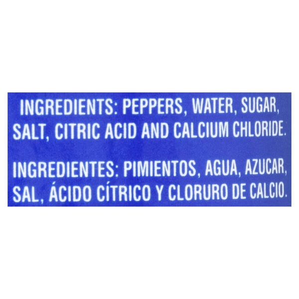 Peppers, Water, Sugar, Salt, Citric Acid And Calcium Chloride.