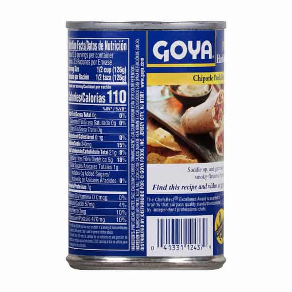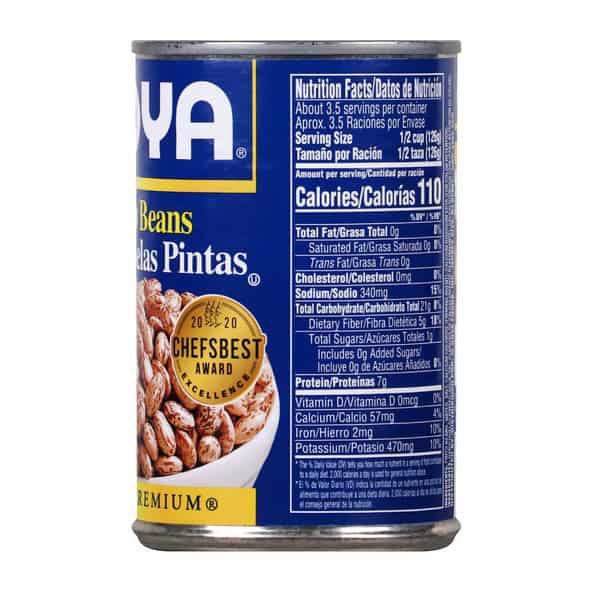 IngredientsPinto Beans, Water, Salt, Calcium Chloride (firming Agent), Calcium Disodium Edta (for Color Retention).