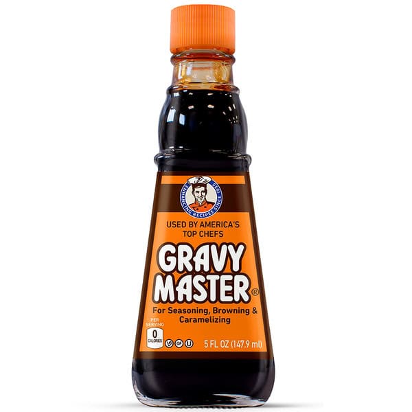For seasoning, browning & caramelizing. Per Serving: 0 calories. Vegan. Gluten free. Halal. Enhancing recipes since 1935. Used by America’s top chefs. No meat. www.GravyMaster.com. Find recipes at www.GravyMaster.com. Made in USA.