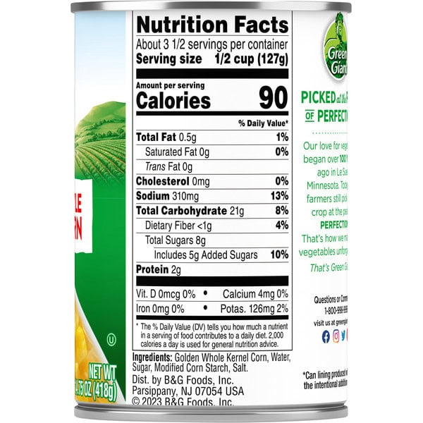 Golden Whole Kernel Corn, Water, Sugar, Modified Corn Starch, Salt.