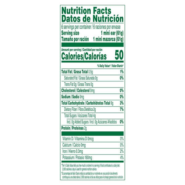 • Green Giant Extra Sweet Corn on the Cob Mini Ears have 50 calories per serving