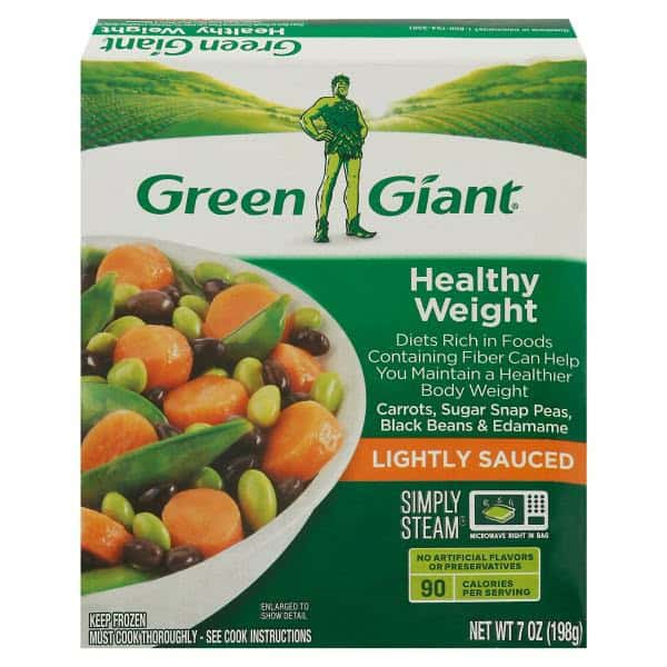 Carrot, sugar snap peas, black beans & edamame. Diet rich in foods containing fiber can help you maintain a healthier body weight. Fits your lifestyle and your freezer. Green Giant Simply Steam vegetables are not only delicious, they come in freezer-friendly, easy-to-stack boxes, with a microwavable pouch inside. Great for a meal, side dish or snack-anytime.