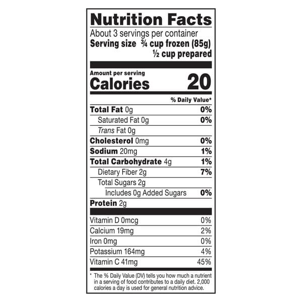 Must cook thoroughly. Cooking Directions: For food safety and quality, follow the directions. Before eating, cook thoroughly to at least 165 degrees F. Keep frozen until ready to cook. Do not thaw. Refrigerate leftovers. Microwave: Place unopened bag, standing up, in center of microwave. Microwave on high 5-1/2 – 6 minutes (Microwave directions developed with 1000-watt ovens. Microwave ovens vary. Adjust cooking times as needed. For 700 watt microwave ovens, cook on high for 7 minutes) or until thoroughly cooked. Let stand 1 minute in microwave. Carefully remove bag. Stove Top: Squeeze bag gently to separate veggies (If veggies can’t easily be separated, defrost in microwave or pour into skillet and cook, covered, over medium-high heat 3 minutes or until veggies break apart, stirring occasionally. Uncover and cook as directed above). Pour contents of bag into large nonstick skillet. Cook over medium heat 5 minutes or until veggies are thoroughly cooked, stirring occasionally. Caution: Bag will be hot; avoid steam when opening.