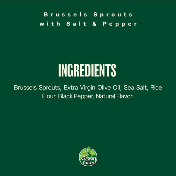 • One 9 ounce bag of Green Giant Simply Steam Brussels Sprouts, Seasoned Frozen Vegetables