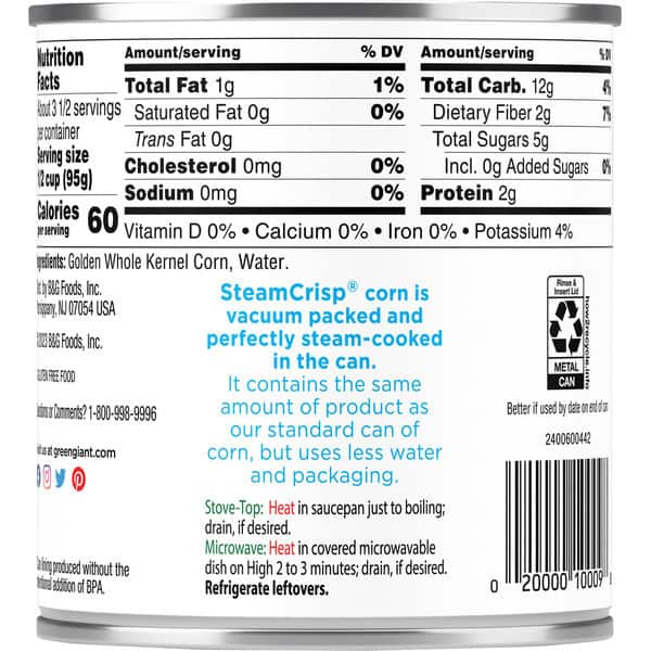 SteamCrisp® corn is vacuum packed and perfectly steam-cooked in the can.