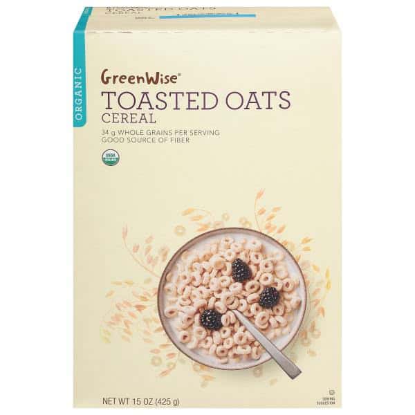 34 g whole grains per serving. USDA Organic. Certified Organic by QAI. This delicious cereal is: organic; low fat; free of saturated fat and has 0 g of trans fat per serving; a cholesterol-free food. Good source of fiber. 1. Whole Grain Oat Flour: Made with organic whole grain oat flour, GreenWise Toasted Oats are a crunchy way to start the day. 2. Wheat Starch: With light and crispy wheat starch, GreenWise Toasted Oats bring a delightful to your breakfast. 3. Cane Sugar: Organic cane sugar makes crunchy GreenWise Toasted Oats purely delightful, adding just a hint of sweetness to your day. Publix Guarantee: Complete satisfaction or your money back. publix.com/greenwise. Scan for more information.