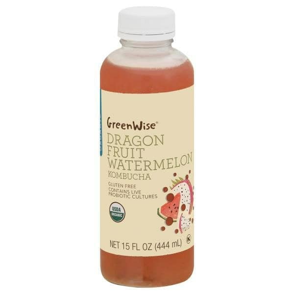 Kombucha (purified Water, Organic Green Tea, Organic Black Tea, Organic Cane Sugar, Kombucha Culture), Organic Watermelon Juice, Organic Dragonfruit Juice.