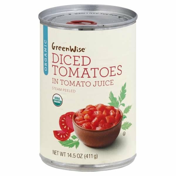 DetailsGreenwise® Tomatoes, in tomato Juice, Organic, Diced.Steam peeled. USDA Organic.Net Wt 14.5 oz (411 g).