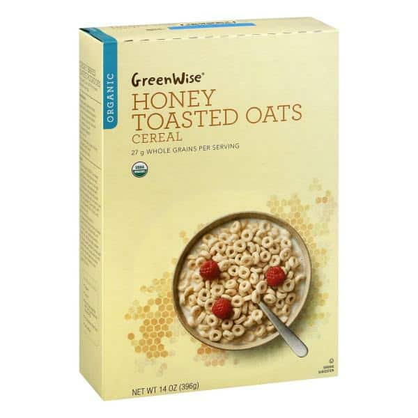 USDA Organic. Certified Organic by QAI. 27 g whole grains per serving. Free of saturated fat and has 0 g of trans fat per serving. New Recipe: See ingredient statement for details. 1. Whole Grain Oat Flour: Made with organic whole grain oat flour, GreenWise Honey Toasted Oats are a crunchy way to start the day. 2. Cane Sugar: Organic cane sugar makes crunchy GreenWise Honey Toasted Oats purely delightful, adding sweetness to your day. 3. Honey: Organic USDA Grade A honey brings a whole lot of sweetness to your breakfast table. This Delicious Cereal is: organic; low fat; free of saturated fat and has 0 g of trans fat per serving; a cholesterol-free food; low sodium. Publix Guarantee: Complete satisfaction or your money back. publix.com/greenwise. Scan for more information.