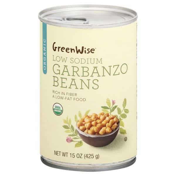 A low-fat food. USDA Organic. Certified Organic by QAI. Rich in fiber. GreenWise Organic Low Sodium Garbanzo Beans – also called chickpeas – are a rich source of fiber. Savor them in Spanish bean soup, or puree them to make delicious hummus. GreenWise Garbanzo Beans are certified organic, harvested from the pod for you to enjoy at the table. Publix Guarantee: Complete satisfaction or your money back. publix.com/greenwise. Scan for more information. The lining of the can was produced without the intentional addition of BPA.