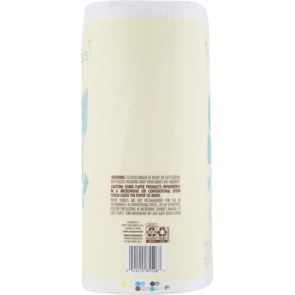 Warning: To avoid danger of injury or suffocation, keep plastic packaging away from babies in children. Caution: Using paper product improperly in a microwave or cenventional oven could cause the paper to burn. Paper towels are not recommended for use in microwaves, in conventional ovens, or on stovetops. Follow precautions in microwave owner’s manual. If fire starts, turn microwave off and leave door closed.