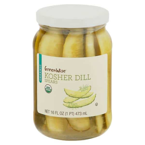 Organic Cucumbers, Water, Organic Vinegar, Sea Salt, Calcium Chloride (Firming Agent), Natural Flavors, and Organic Turmeric (for Color).