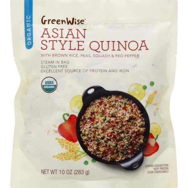 1. Organic Brown Rice: Organic brown rice is fluffy, hearty, and a great whole grain alternative to traditional white rice. 2. Organic Red & White Quinoa: Our two-toned blend of organic ancient grains is fluffy and satisfying with a slightly earthy flavor and a chewy texture that really hits the spot. 3. Organic Red Pepper, Squash & Peas: Crisp bell pepper, perfectly cooked squash; and sweet green peas create a colorful veggie blend that keeps each bite interesting.