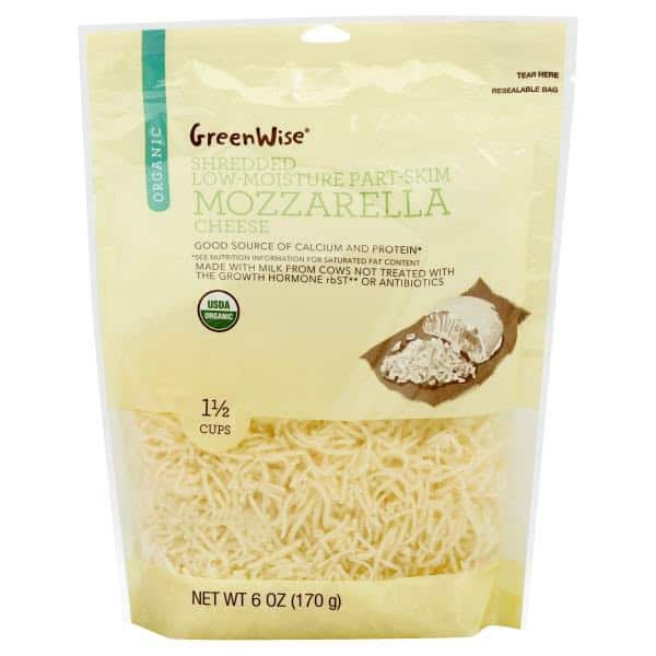 Organic Low-moisture Part-skim Mozzarella Cheese (organic Cultured Pasteurized Reduced Fat Milk, Salt, Microbial Enzymes), Powdered Cellulose (added To Prevent Caking).