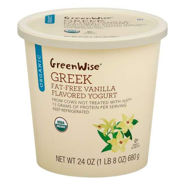 Strained Yogurt (Grade A Pasteurized Organic Nonfat Milk, Live Active Yogurt Cultures [L. Bulgaricus, S. Thermophilus, L. Acidophilus, Bifidus, L. Casei]), Vanilla Flavor Base (Water, Organic Cane Sugar, Natural Flavor, Organic Locust Bean Gum, Organic Lemon Juice Concentrate).