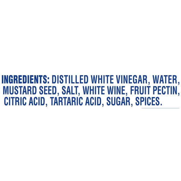 Distilled White Vinegar, Water, Mustard Seed, Salt, White Wine, Fruit Pectin, Citric Acid, Tartaric Acid, Sugar, Spices