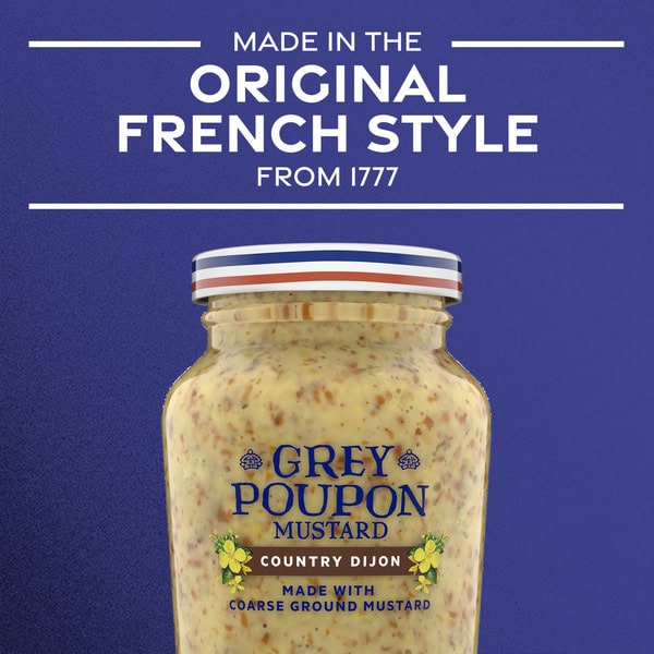 Enjoy the refined taste you love with a whole grain mustard twist in Grey Poupon Country Coarse Ground Dijon Mustard. Since 1777, our dijon mustard has been prepared in accordance with the original recipe from Dijon, France. Made with #1 grade mustard seeds, our white wine infused mustard is blended with vinegar and spices to offer the bold flavor you expect from Grey Poupon. Bring the refined taste of Grey Poupon Dijon Mustard to your favorite recipes and enjoy some of the finer flavors in life. Try using dijon mustard as a sandwich spread to bring some boldness to lunchtime. Whip up some dijon mustard potatoes, a roasted pork loin with dijon glaze, or use it as an ingredient in a delicious dijon mustard marinade. You can even enhance your favorite chicken or pork entree, too. Our coarse dijon mustard comes in an 8-ounce resealable jar for easy application. Whether you’re making lunch or preparing for a dinner party, Grey Poupon Country Coarse Ground Dijon Mustard will elevate your next meal or occasion.
